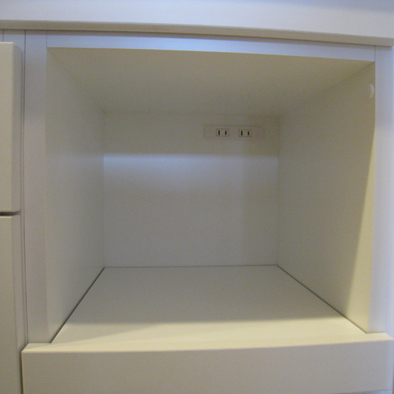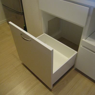 ゴミ箱を収納できるスペース、スライドテーブル、炊飯器の収納がしたい。